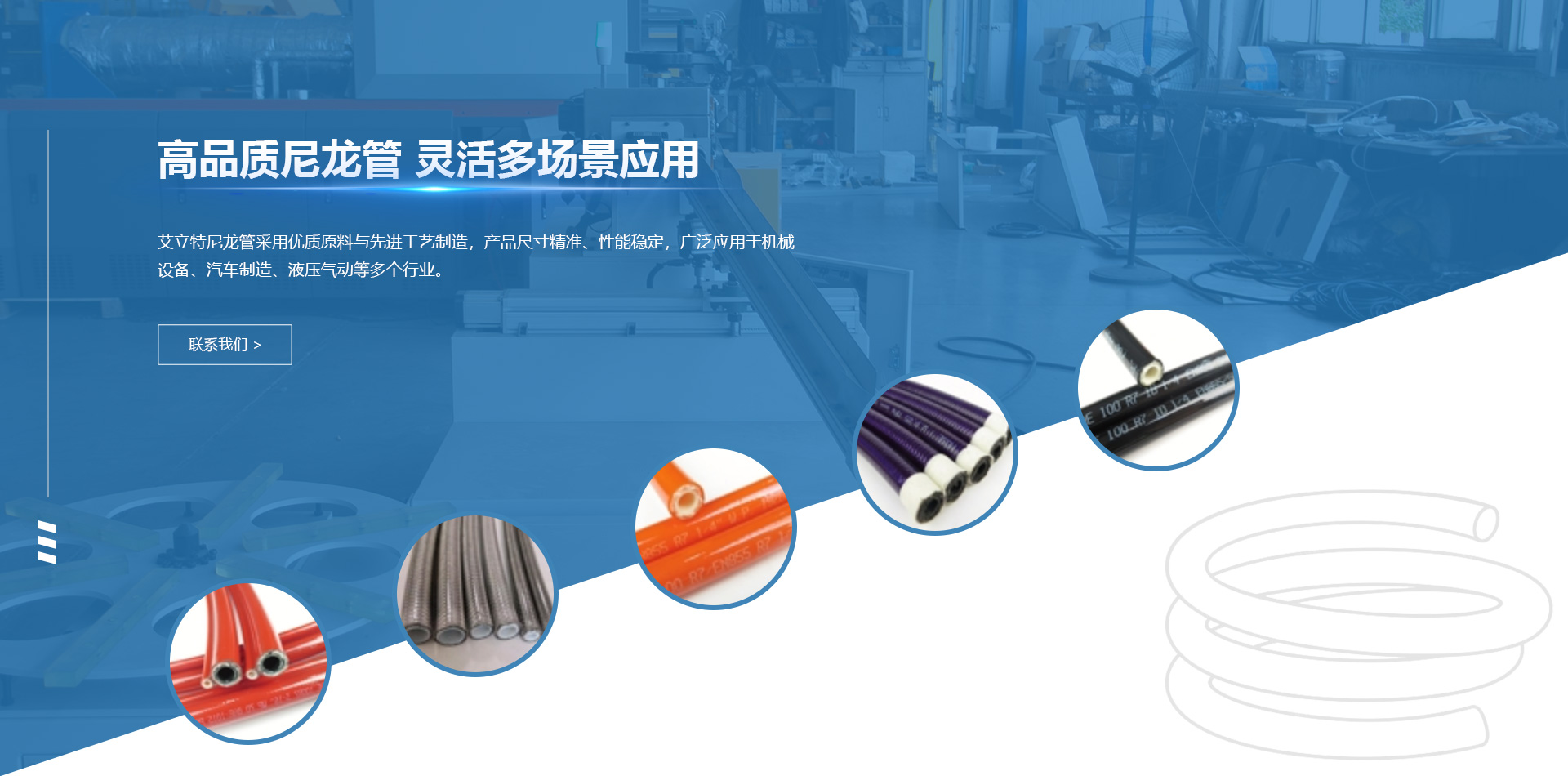 立特自动化科技(衡水)有限公司成立于2009年,初期为衡水启瑞公司正式注册,专注于尼龙管,树脂管,螺旋管的生产和销售,于2020年引进先进生产技术及管理系统,并重新并组成立了艾立特自动化科技(衡水)有限公司,是集信息系统集成、工业自动化流水线、工业机器的技术研发、机电一体化设备、橡塑机械、电气设备、塑料软管、树脂管、管路总成的生产销售、安装及维修为一体的综合性企业。